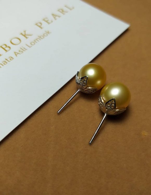 SOUTH SEA PEARLS Material – White Gold 22k 7.3gr (91.6%) Natural Color – Gold South Sea Pearl Shape – Round Size – 12.5mm Code – KHSL-GL3